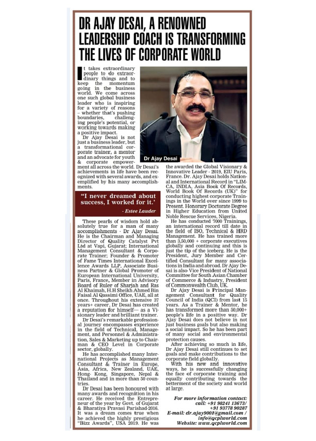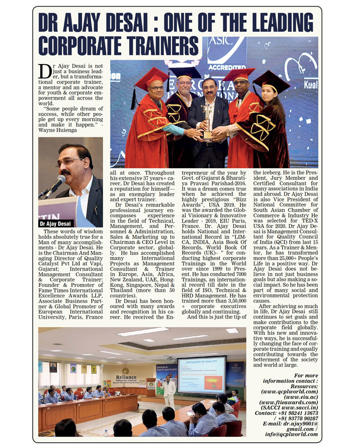 Corporate Training, Mentoring & Counselling, Social Activities, Global Management systems in Quality, Environments, Health & safety etc.
